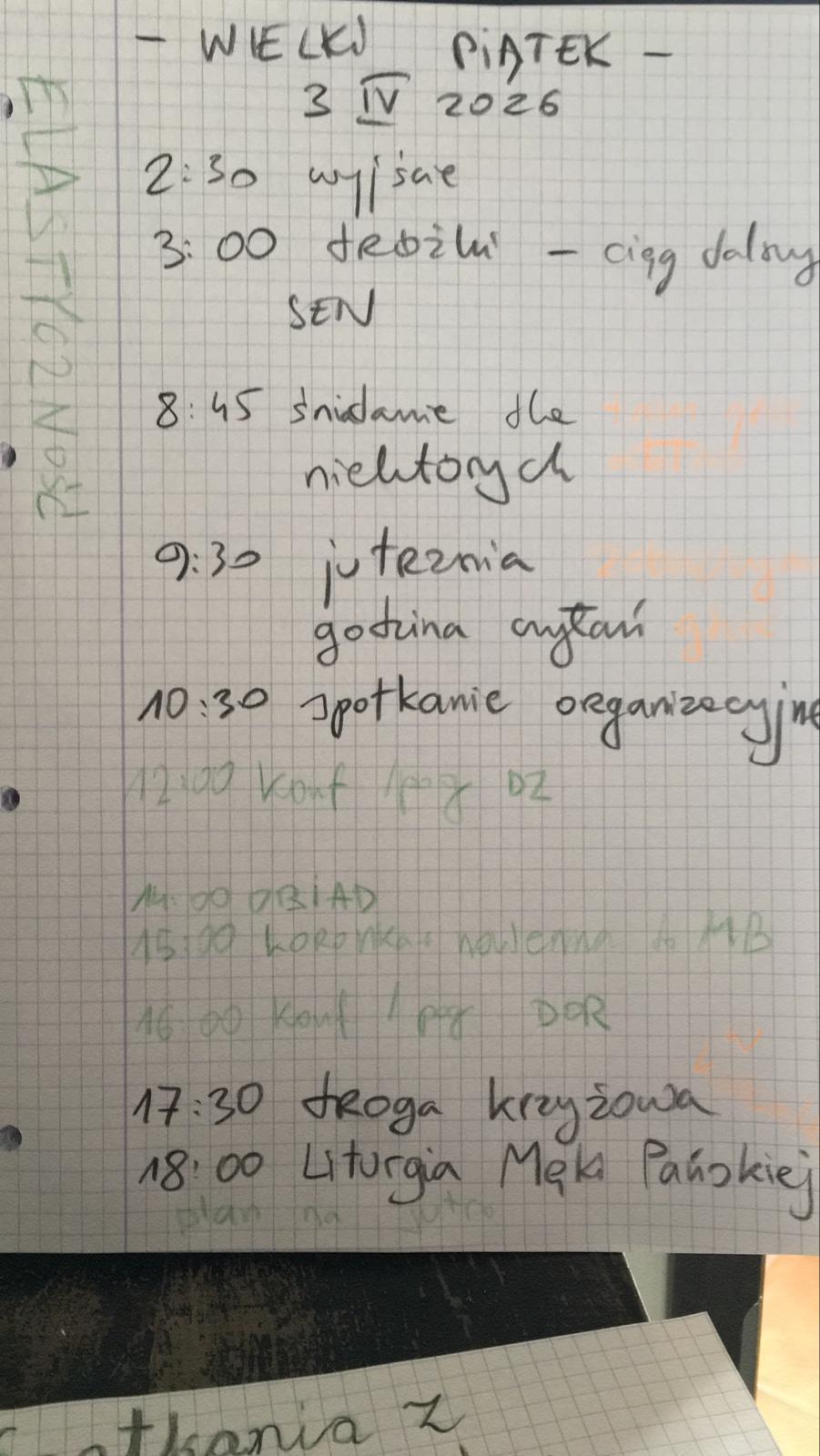 - udział w lokalnych Obchodach Triduum Paschalnego w Kalwarii Pakoskiej